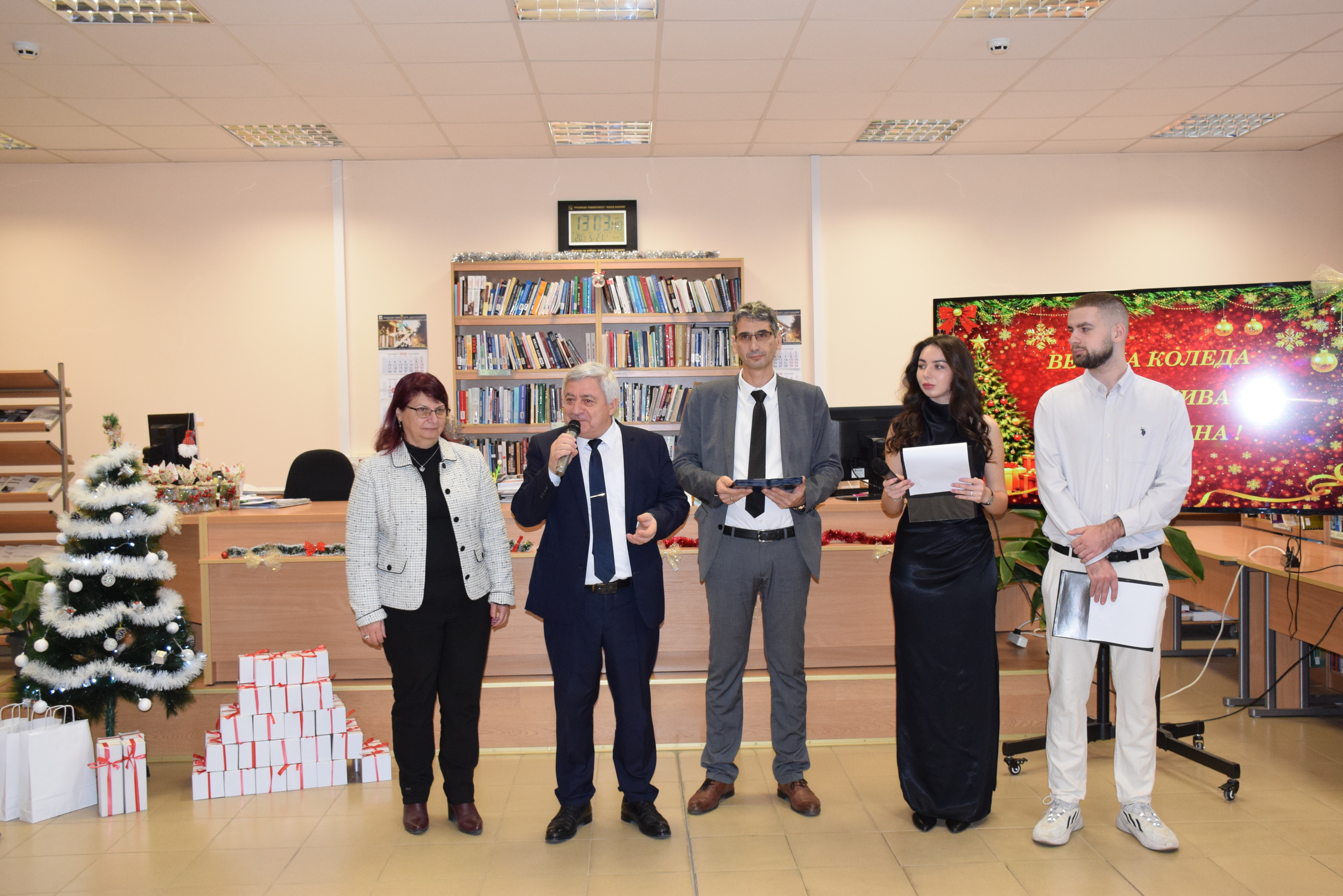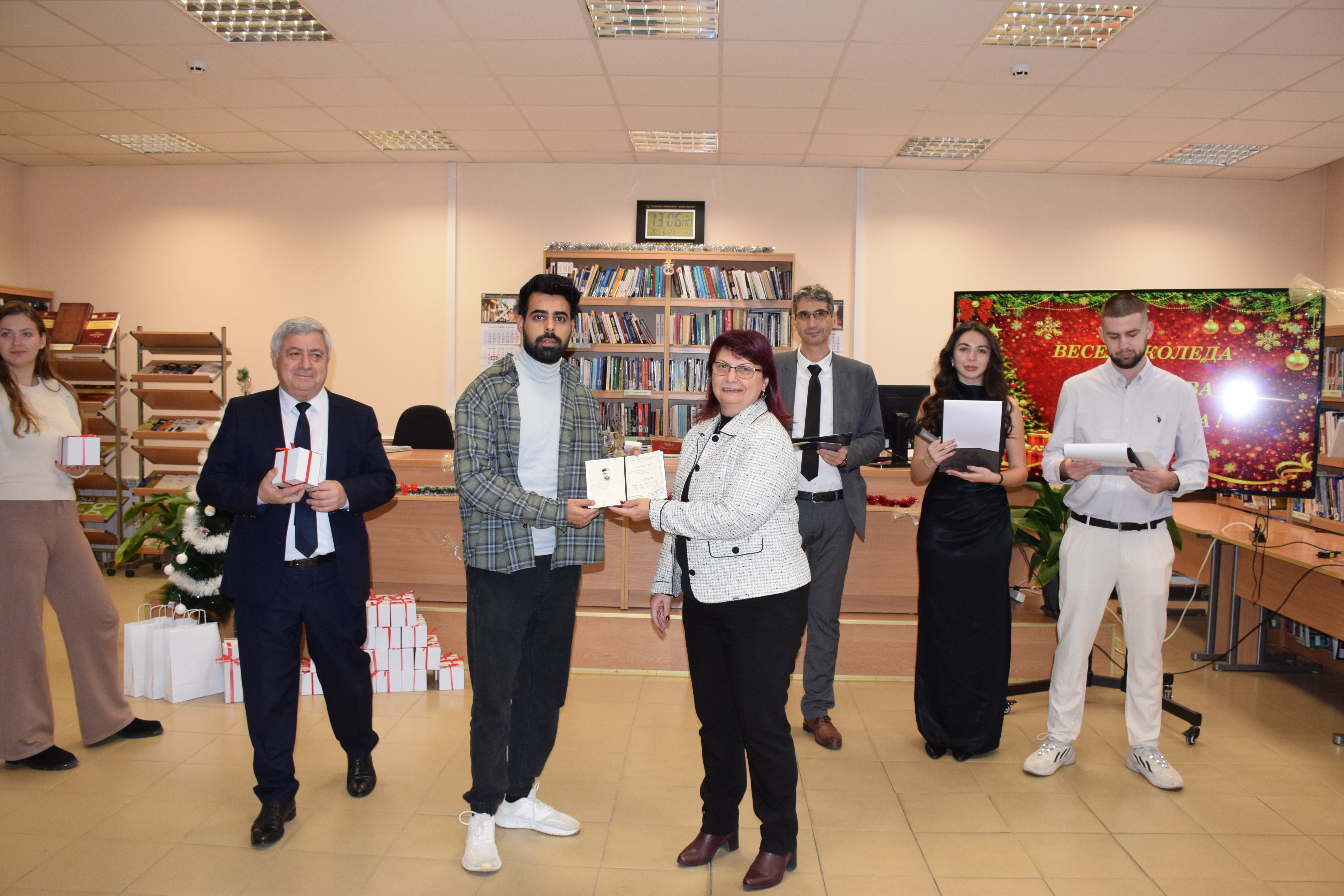 Today, December 17th , 2025, a Christmas party was held in the reading room of the library of the university of Ruse for foreign students studying at Ruse Alma Mater. It was organized by the Foreign Students Department and dedicated to the traditions of Christmas celebrations in Bulgaria.