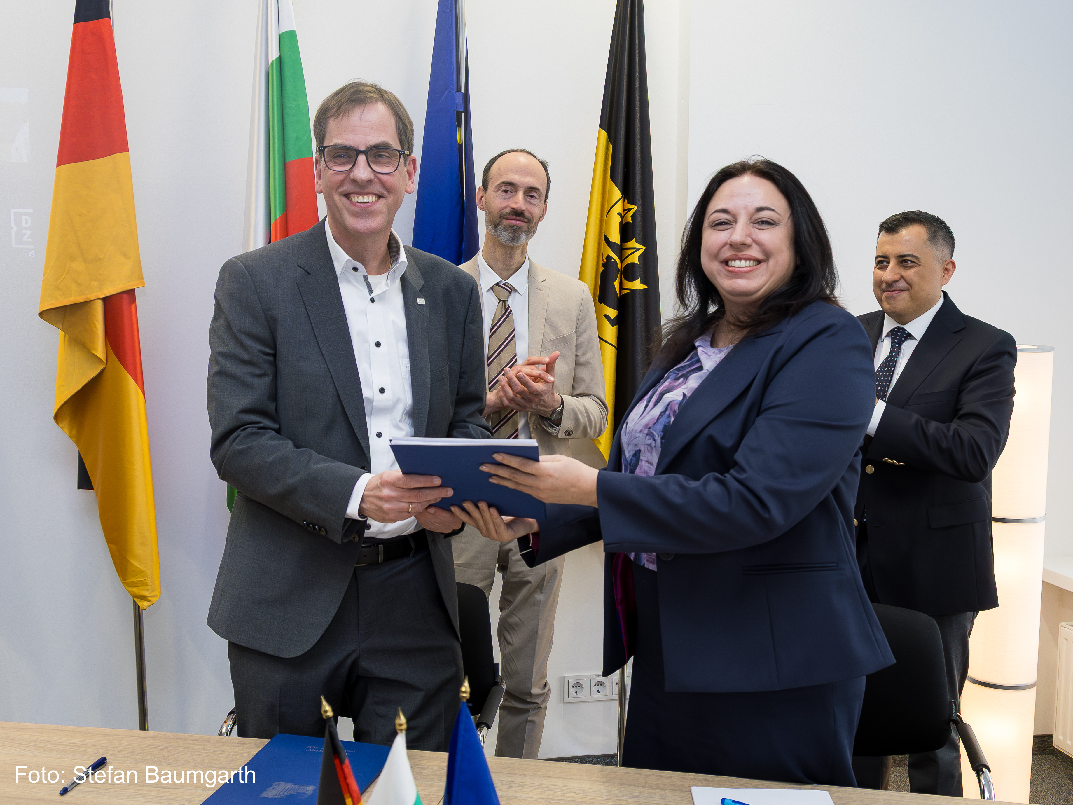 At the beginning of the event, Bulgarian Consul General in Munich Stefan Yonkov welcomed the attendees and emphasized that the signed agreements are based on real partnerships and long-term relationships. According to him, Bulgaria and Bavaria maintain a special closeness – Bavarian companies invest in Bulgaria, create jobs and transfer technologies, while thousands of Bulgarian students study and work in the region, contributing to the development of German society. In his speech, the Consul General also highlighted the links between the Georg Simon Ohm University of Applied Sciences in Nuremberg (TH Nürnberg Georg Simon Ohm) and the University of National and World Economy (UNWE) as part of the broader network of academic cooperation between Bulgaria and Bavaria.